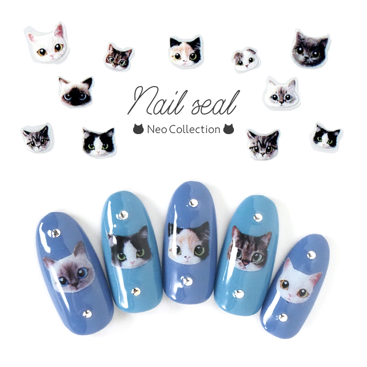 ネイルシール 猫 顔 正面 キャット 【MG200909-20】 可愛い アニマル ねこ
