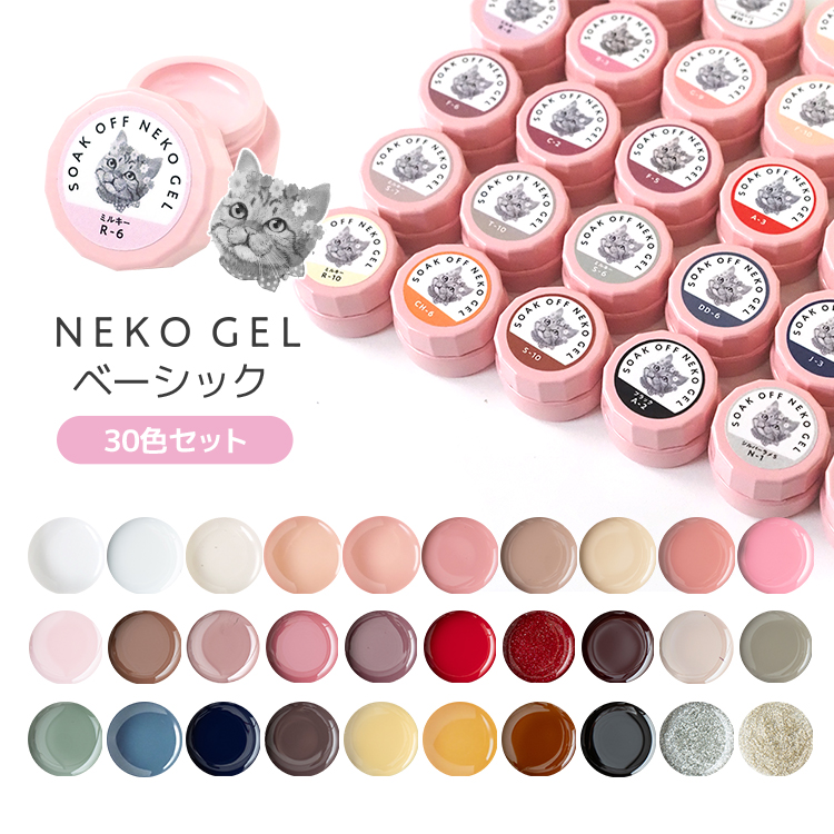 ジェルネイル ネコジェル ベーシック30色セット 内容量3g 安心の化粧品登録済 LEDライト/UVライト対応 ソークオフジェル 初心者 プチプラ