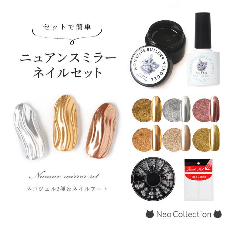 ミラーネイル セット 流行のニュアンスミラーアートが簡単に出来るお試しセット♪ ジェルネイル ビルダージェル マットトップジェル ミラーパウダー