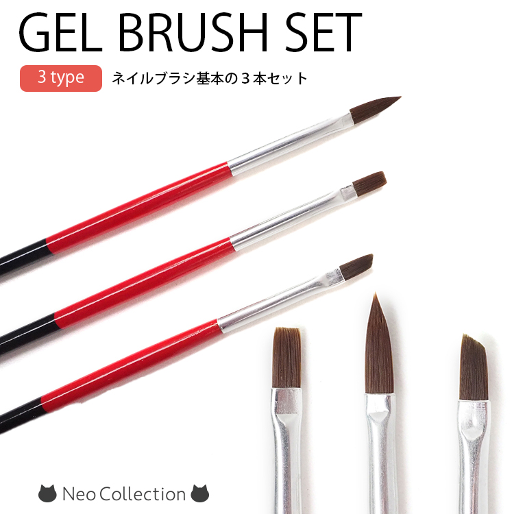 ジェルネイルブラシ3本セット 基本の3種筆 平筆/フレンチ/アート ネイル用ブラシ ネイル用品 セルフネイル ネイルアート