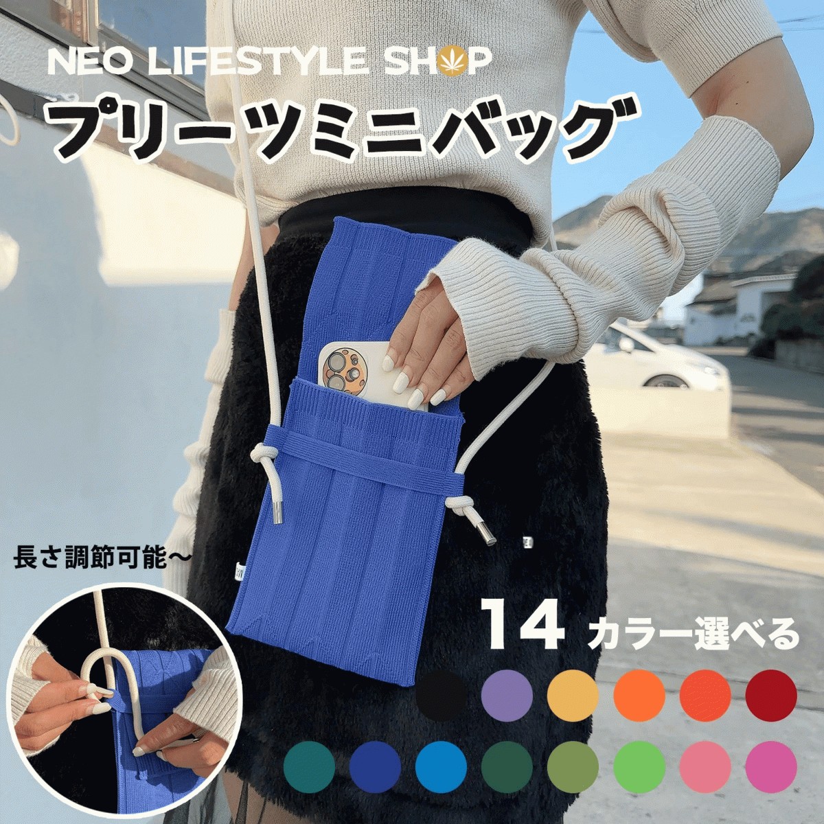 プリーツミニショルダー プリーツ スマホショルダー バッグ 斜め掛け 肩掛け お出かけ ケータイケース ニットショルダーバッグ 韓国 韓国ファッション