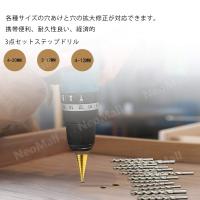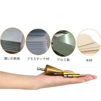 ステップドリル 3本 セットケース 付き 電動 ドリル 用 刃 タケノコ スパイラル ビット 六角軸 チタンコーティング