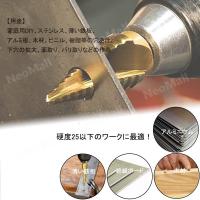 | 送料コミコミ☆ ケース 付き ステップドリル 3本 セット 電動 ドリル 用 刃 タケノコ スパイラル ビット 六角軸 チタンコーティング 商品詳細 | 先端から段階になって、「タケノコ」ような形状となっていますので 小さな穴から大きな穴まで、ご希望の大きさで穴をあけられます。 *作業中は必ず保護メガネ、マスク、軍手を着用してください。 *穴明けの場合、無理な押しつけや左右にゆらしてコジあけたりはしないでください。 * 石、壁、ガラスには使用しないでください。ドリルの破損につながります。 セット内容 サイズ:4-12mm 2mm刻み(4/6/8/10/12mm)段数:5段 六角軸 サイズ:4-20mm 2mm刻み(4/6/8/10/12/14/16/18/20mm)段数:9段 六角軸 サイズ:4-20mm 2mm刻み(4/6/8/10/12/14/16/18/20/22/24/26/28/30/32mm)段数:15段 六角軸 | 注意事項 | ■商品保証・返品対応について■ ≪商品発送後、初期不良7日間の対応について≫ 初期不良の対応につきましては往復の送料を当方負担致します。