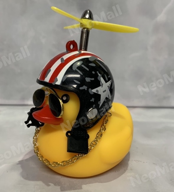 ヘルメット アヒル サングラス ネックレス 光るアヒル ちょいワルアヒル アヒル 空軍 赤黒星 自転車 バイク 車に プロペラ 付き