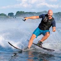 ●スラロームとコンボを両方楽しむことができ、簡単に立ち上がりができるようにも設計されているため初心者でも乗りやすく、家族や友人でシェアして使用ができる水上スキーです。