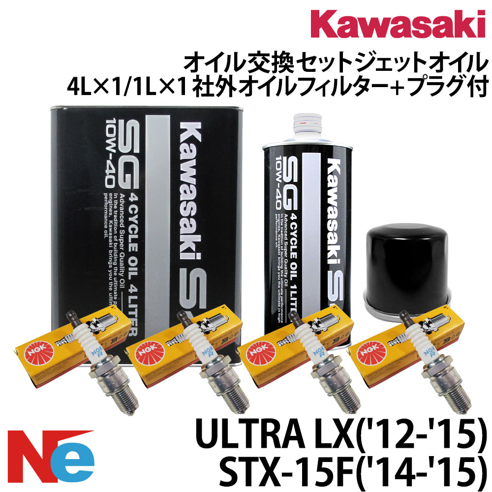 カワサキ KAWASAKI オイル交換セット ULTRA LX('12-'15) STX-15F('14-'15) 純正エンジンオイル 社外品オイルフィルター スパークプラグ ジェットスキー 水上バイ