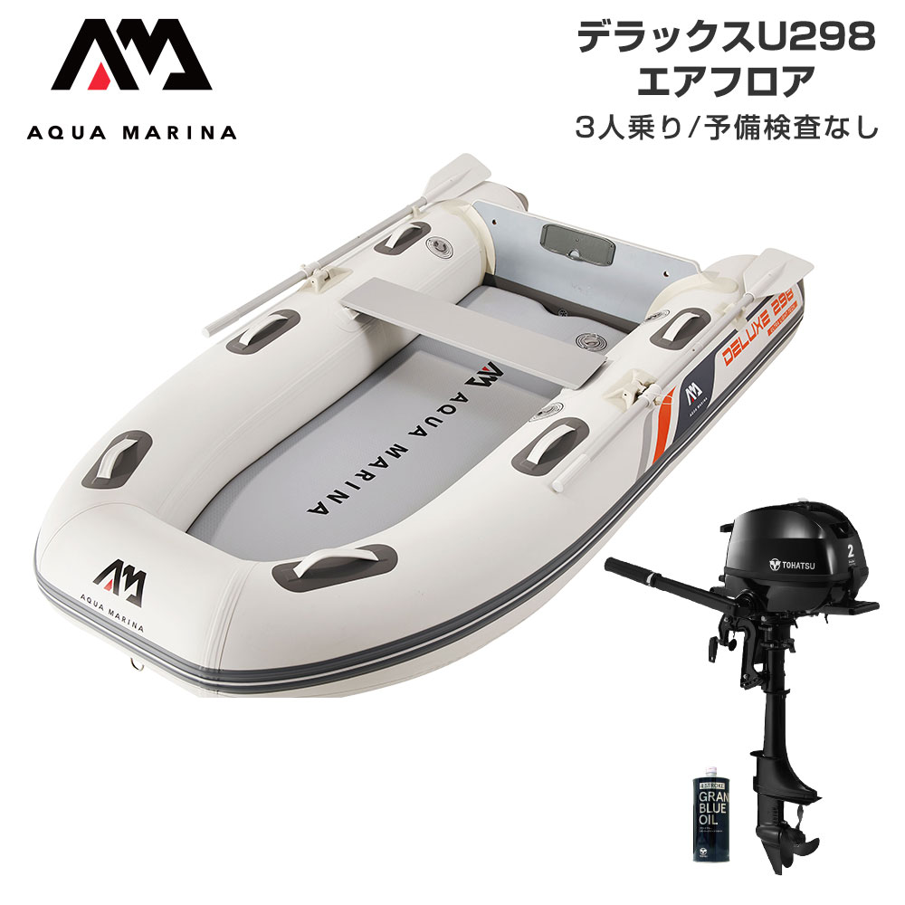 ゴムボート 釣り フィッシング トーハツ 2馬力 船外機 アクアマリーナ デラックスU298 3人乗り エアフロア Eセット