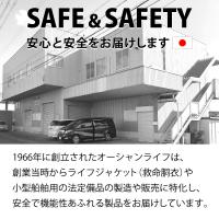 また浮力は7.5kg以上(小児用は5Kg以上)あり、全ての小型船舶に法定備品として搭載することができるタイプです。