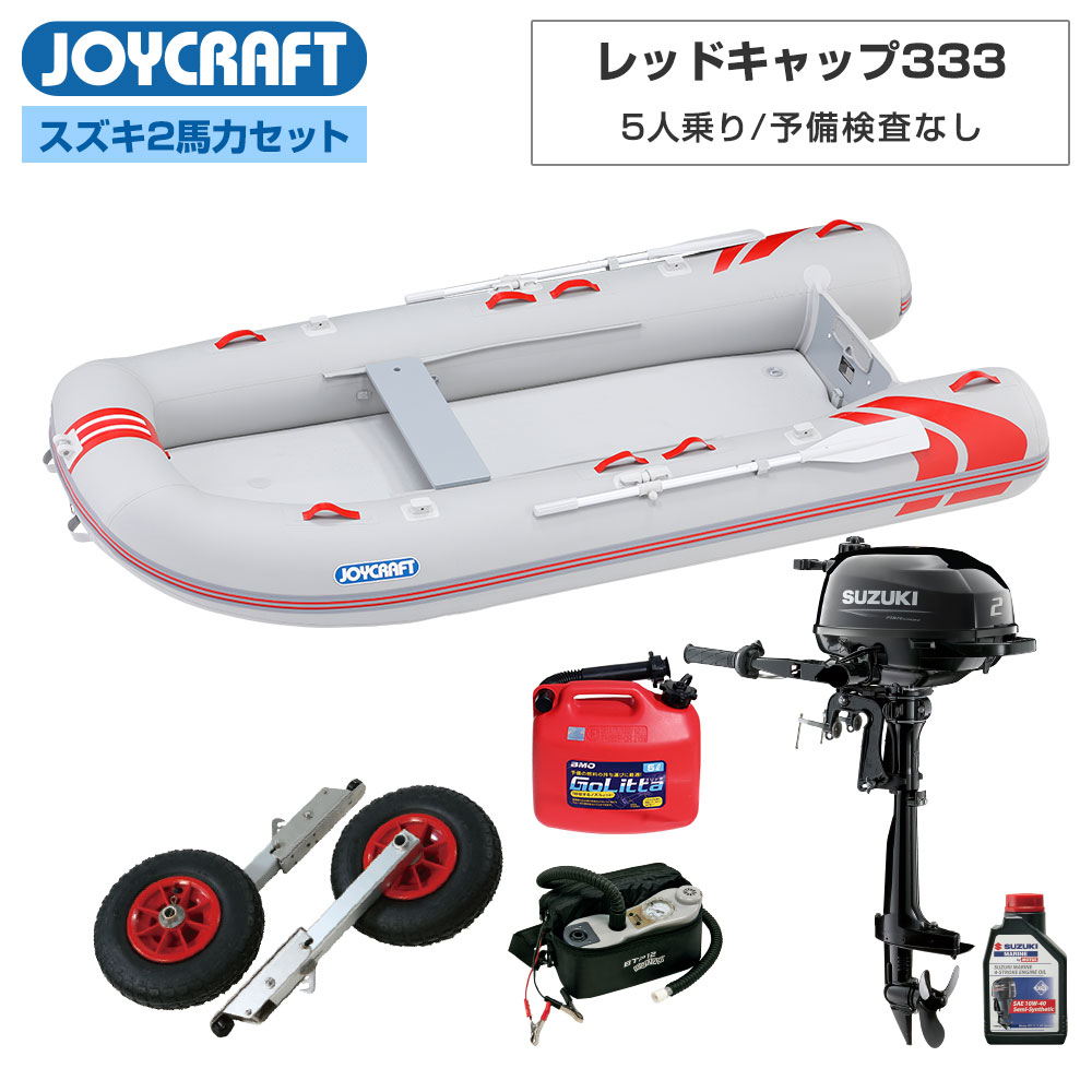 【台数限定】 ジョイクラフト ゴムボート 5人乗り レッドキャップ333 JRC-333 予備検査なし スズキ2馬力船外機 海釣り