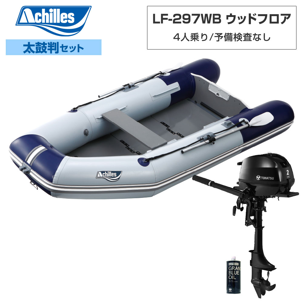 ゴムボート アキレス LF-297WB ウッドフロア 2026年太鼓判L-2セット トーハツ2馬力船外機 4人乗り 釣り バイオレットブルー パールグレー