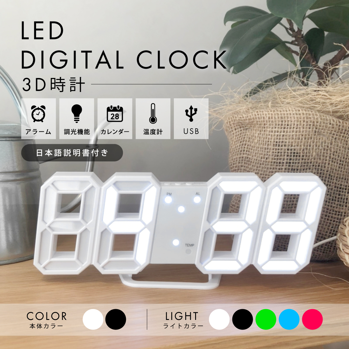 デジタル時計 置き時計 3Mコード付属 目覚まし時計 壁掛け時計 壁掛け 説明書付き 北欧 LED 3D 置き型 光る ポイント利用