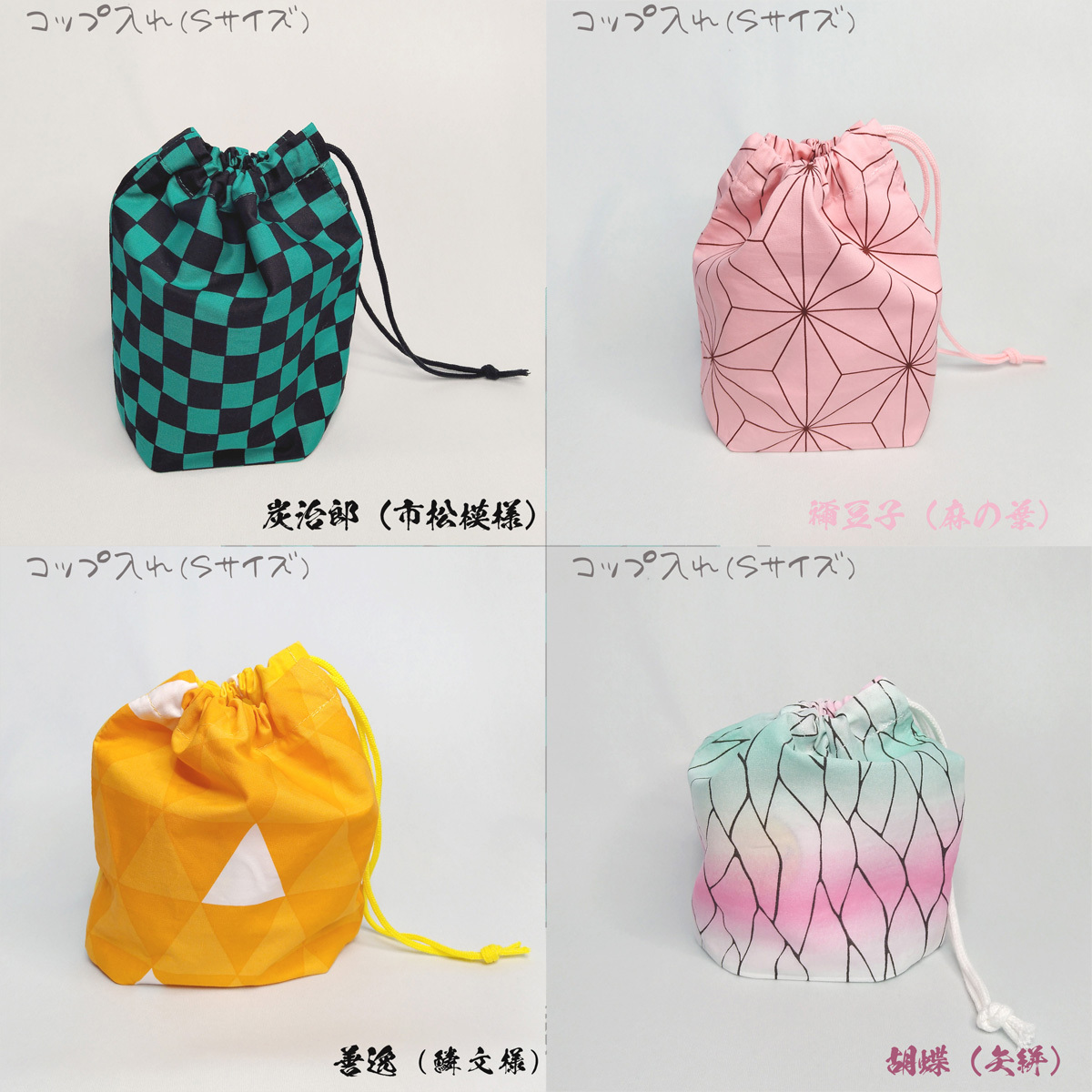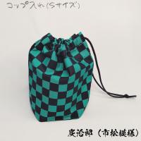 【コップ袋】Sサイズ ハンドメイド 巾着 コップ入れ 鬼滅の刃 炭治郎 禰豆子 ねずこ 善逸 胡蝶 市松模様 麻の葉 鱗文様 矢絣 柄 子供 幼稚園 保育園 学校