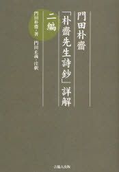 門田朴齋/著 門田正義/注釈 門田誠一郎/編/門田朴齋「朴齋先生詩鈔」詳解 2編、メディア:BOOK、発売日:2011/07、重量:340g、商品コード:NEOBK-1005300、JANコード/ISBNコード:9784860692896