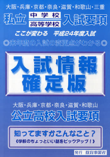 教育事業社/入試情報確定版 大阪・兵庫・京都・奈良・滋賀・和歌山・三重 私立中学校高等学校入試要項 平成24年度 大阪・兵庫・京都・奈良・滋賀・和歌山 公立高校入試要項、メディア:BOOK、発売日:2011/12、重量:100g、商品コード:NEOBK-1055724、JANコード/ISBNコード:9784902096880
