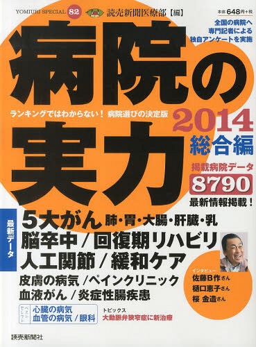 読売新聞医療部/編/病院の実力 2014総合編 (YOMIURI SPECIAL 82)、メディア:BOOK、発売日:2014/02、重量:200g、商品コード:NEOBK-1614798、JANコード/ISBNコード:9784643140033