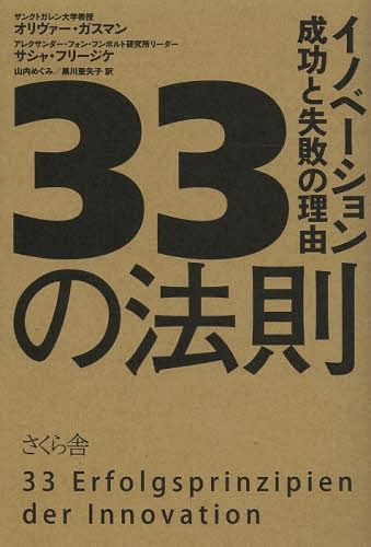 オリヴァー・ガスマン/著 サシャ・フリージケ/著 山内めぐみ/訳 黒川亜矢子/訳/33の法則 イノベーション成功と失敗の理由 / 原タイトル:33 Erfolgsprinzipien der Innovation、メディア:BOOK、発売日:2014/03、重量:340g、商品コード:NEOBK-1637329、JANコード/ISBNコード:9784906732692