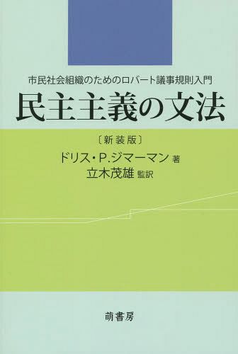 ドリス・P.ジマーマン/著 立木茂雄/監訳/民主主義の文法 市民社会組織のためのロバート議事規則入門 新装版 / 原タイトル:ROBERT’S RULES IN PLAIN ENGLISH、メディア:BOOK、発売日:2014/05、重量:193g、商品コード:NEOBK-1669195、JANコード/ISBNコード:9784860650858