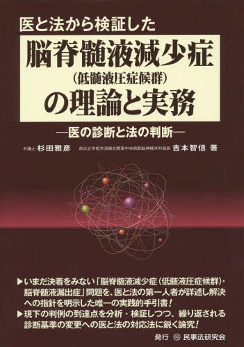 杉田雅彦/著 吉本智信/著/医と法から検証した脳脊髄液減少症〈低髄液圧症候群〉の理論と実務 医の診断と法の判断、メディア:BOOK、発売日:2014/08、重量:340g、商品コード:NEOBK-1699246、JANコード/ISBNコード:9784896289572