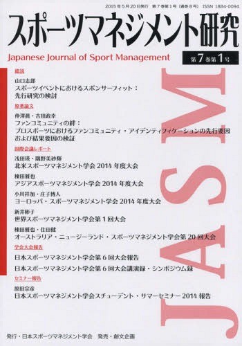 [本/雑誌]/スポーツマネジメント研究 第7巻第1号/日本スポーツマネジメント学会/編集