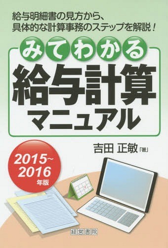 吉田正敏/著/みてわかる給与計算マニュアル 2015〜2016年版、メディア:BOOK、発売日:2015/07、重量:340g、商品コード:NEOBK-1831794、JANコード/ISBNコード:9784863261983