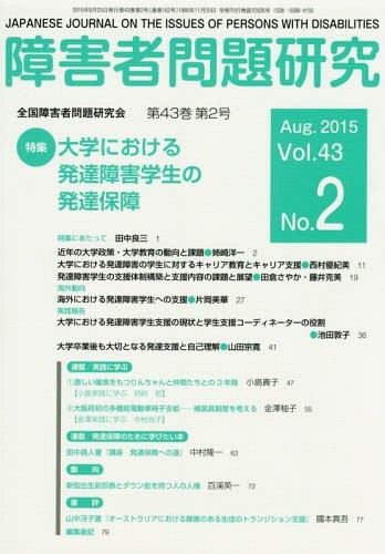 障害者問題研究編集委員会/編集/障害者問題研究 Vol.43No.2、メディア:BOOK、発売日:2015/08、重量:340g、商品コード:NEOBK-1845264、JANコード/ISBNコード:9784881344255