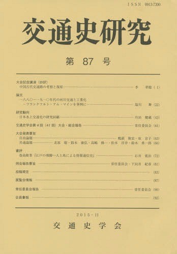 交通史学会/編集/交通史研究 87、メディア:BOOK、発売日:2015/11、重量:340g、商品コード:NEOBK-1895624、JANコード/ISBNコード:9784642094412