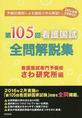 さわ研究所/編/第105回看護国試全問解説集、メディア:BOOK、発売日:2016/04、重量:540g、商品コード:NEOBK-1948155、JANコード/ISBNコード:9784767112671