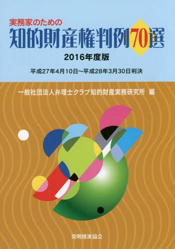 弁理士クラブ知的財産実務研究所/編/’16 知的財産権判例70選 (実務家のための)、メディア:BOOK、発売日:2016/11、重量:340g、商品コード:NEOBK-2036896、JANコード/ISBNコード:9784827112771