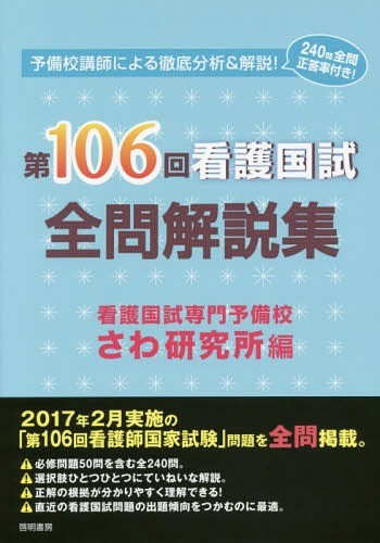 さわ研究所/編/第106回看護国試全問解説集、メディア:BOOK、発売日:2017/04、重量:540g、商品コード:NEOBK-2088486、JANコード/ISBNコード:9784767112756