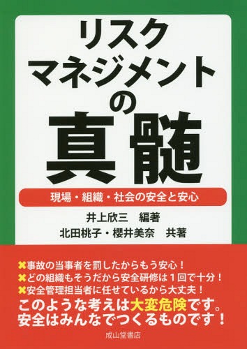 井上欣三/編著 北田桃子/共著 櫻井美奈/共著/リスクマネジメントの真髄 現場・組織・社会の安全と安心、メディア:BOOK、発売日:2017/04、重量:340g、商品コード:NEOBK-2088534、JANコード/ISBNコード:9784425982912