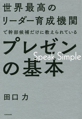 田口力/著/世界最高のリーダー育成機関で幹部候補だけに教えられているプレゼンの基本 Speak Simple、メディア:BOOK、発売日:2017/07、重量:340g、商品コード:NEOBK-2116438、JANコード/ISBNコード:9784046020253