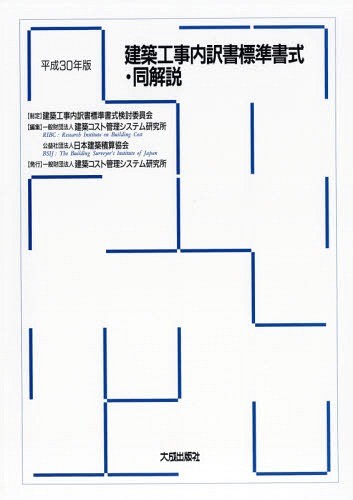 【送料無料】[本/雑誌]/建築工事内訳書標準書式・同解説 平成30年版/建築コスト管理システム研究所/編集 日本建築積算協会/編集