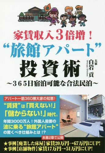 白岩貢/著/家賃収入3倍増!“旅館アパート”投資術 365日宿泊可能な合法民泊、メディア:BOOK、発売日:2018/06、重量:340g、商品コード:NEOBK-2246893、JANコード/ISBNコード:9784341087036