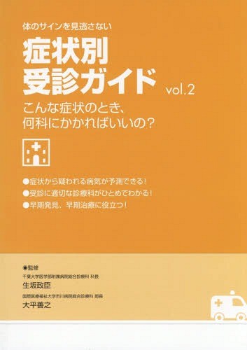 生坂政臣/監修 大平善之/監修/体のサインを見逃さない症状別受診ガイド こんな症状のとき、何科にかかればいいの? vol.2、メディア:BOOK、発売日:2018/07、重量:340g、商品コード:NEOBK-2255617、JANコード/ISBNコード:9784904011782