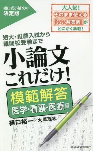 樋口裕一/著 大原理志/著/小論文これだけ! 短大・推薦入試から難関校受験まで 模範解答医学・看護・医療編、メディア:BOOK、発売日:2018/10、重量:223g、商品コード:NEOBK-2284838、JANコード/ISBNコード:9784492046357