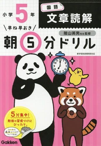 陰山英男/監修/早ね早おき朝5分ドリル 小5 国語文章読解、メディア:BOOK、発売日:2019/03、重量:204g、商品コード:NEOBK-2334546、JANコード/ISBNコード:9784053048509