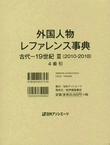 日外アソシエーツ株式会社/編集/外国人物レファレンス事典 古代-19世紀3〈2010-2018〉 4、メディア:BOOK、発売日:2019/02、重量:1200g、商品コード:NEOBK-2334797、JANコード/ISBNコード:9784816927539