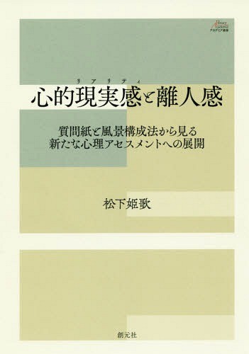松下姫歌/著/心的現実感(リアリティ)と離人感 質問紙と風景構成法から見る新たな心理アセスメントへの展開 (アカデミア叢書)、メディア:BOOK、発売日:2019/03、重量:340g、商品コード:NEOBK-2339485、JANコード/ISBNコード:9784422116471