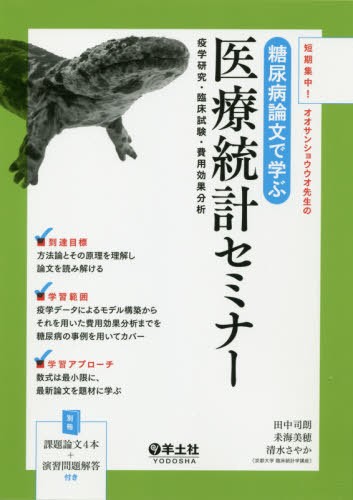 田中司朗/著 耒海美穂/著 清水さやか/著/短期集中!オオサンショウウオ先生の糖尿病論文で学ぶ医療統計セミナー 疫学研究・臨床試験・費用効果分析、メディア:BOOK、発売日:2019/07、重量:340g、商品コード:NEOBK-2385814、JANコード/ISBNコード:9784758118552