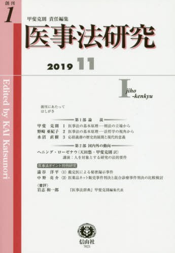 甲斐克則/責任編集/医事法研究 1、メディア:BOOK、発売日:2019/11、重量:340g、商品コード:NEOBK-2440400、JANコード/ISBNコード:9784797270211