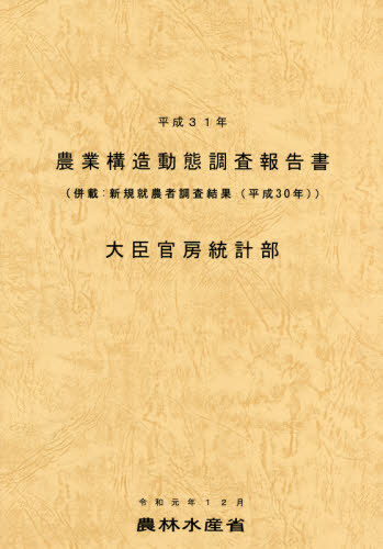 農林水産省大臣官房統計部/編集/農業構造動態調査報告書 平成31年、メディア:BOOK、発売日:2020/04、重量:340g、商品コード:NEOBK-2488901、JANコード/ISBNコード:9784541043115