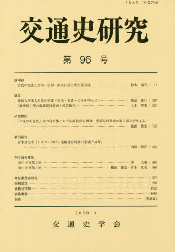 交通史学会/編集/交通史研究 96、メディア:BOOK、発売日:2020/03、重量:340g、商品コード:NEOBK-2492421、JANコード/ISBNコード:9784642094504