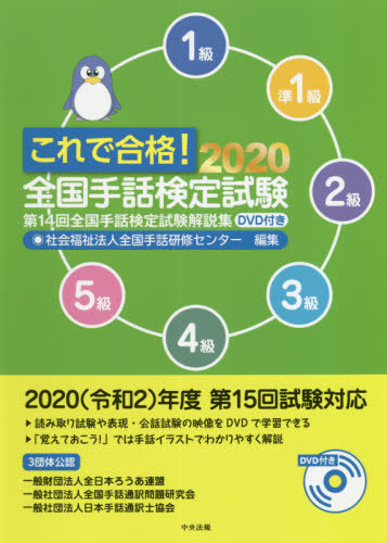 | 2020(令和2)年度第15回試験対応。読み取り試験や表現・会話試験の映像をDVDで学習できる。「覚えておこう!」では手話イラストでわかりやすく解説。 |
