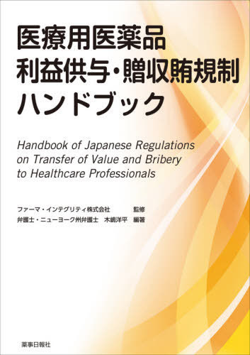 | 医療用医薬品に関する医療関係者への利益供与・贈収賄に関する規制について...関連法規をコンパクトかつ和英対訳方式にて解説。国内及び海外における規制を一元的に整理して掲載。 |