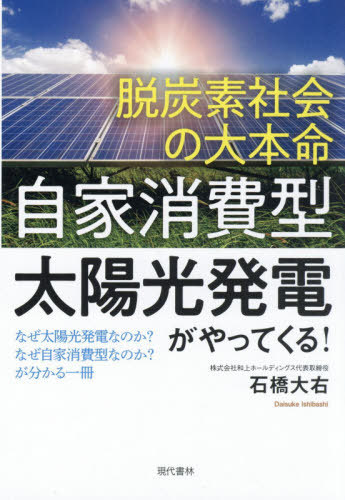 石橋大右/著/脱炭素社会の大本命「自家消費型太陽光発電」がやってくる! なぜ太陽光発電なのか?なぜ自家消費型なのか?が分かる一冊、メディア:BOOK、発売日:2021/06、重量:340g、商品コード:NEOBK-2622242、JANコード/ISBNコード:9784774518985