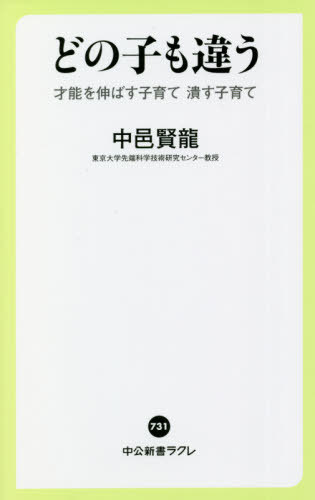 中邑賢龍/著/どの子も違う 才能を伸ばす子育て潰す子育て (中公新書ラクレ)、メディア:BOOK、発売日:2021/06、重量:178g、商品コード:NEOBK-2624696、JANコード/ISBNコード:9784121507310