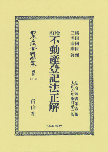 横田 國臣 題 三宅 徳業/著/増訂 不動産登記法正解 復刻版 (日本立法資料全集)、メディア:BOOK、発売日:2021/08、重量:450g、商品コード:NEOBK-2651370、JANコード/ISBNコード:9784797274622