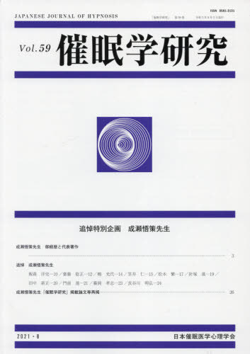 日本催眠医学心理学会/催眠学研究 59、メディア:BOOK、発売日:2021/08、重量:340g、商品コード:NEOBK-2657215、JANコード/ISBNコード:9784866161297