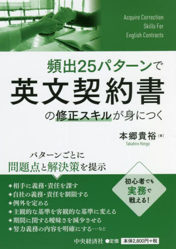 本郷貴裕/著/頻出25パターンで英文契約書の修正スキルが身につく、メディア:BOOK、発売日:2022/01、重量:340g、商品コード:NEOBK-2700492、JANコード/ISBNコード:9784502409219