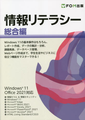 富士通ラーニングメディア/著作制作/情報リテラシ 総合編Win11/2021、メディア:BOOK、発売日:2022/02、重量:540g、商品コード:NEOBK-2711580、JANコード/ISBNコード:9784938927554